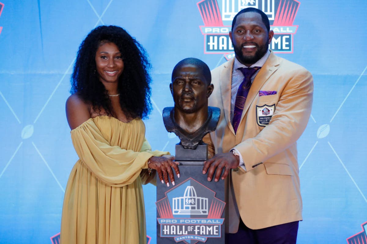 Pictured, Ray Lewis unveils his bust along with daughter Diaymon Lewis during the 2018 NFL Hall of Fame Enshrinement Ceremony at Tom Benson Hall of Fame Stadium on Aug. 4, 2018, in Canton, Ohio. (Photo by Joe Robbins/Getty Images)
