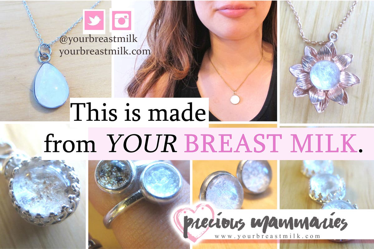 Breast milk jewelry is a keepsake for breastfeeding moms wanting to preserve the wonderful memory of breastfeeding. It's a keepsake made from DNA and organic material which can also include baby's lock of hair, dried encapsuled placenta, or ashes.