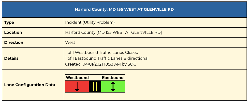 While the State Highway Administration reported the closure would be all lanes on Route 23 west, the Maryland Department of Transportation's Coordinated Highways Action Response Team (CHART) said the eastbound lane was functioning as a bidirectional route, allowing for traffic in both directions.