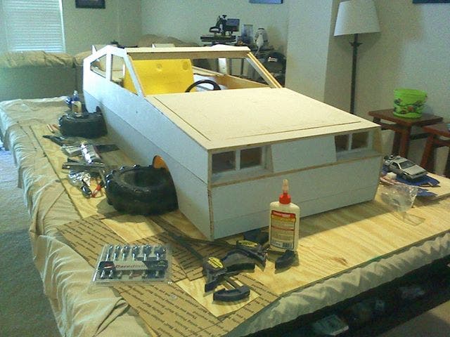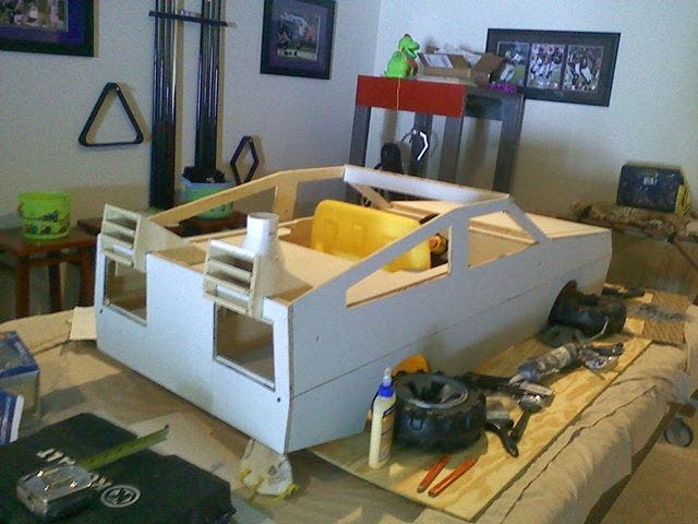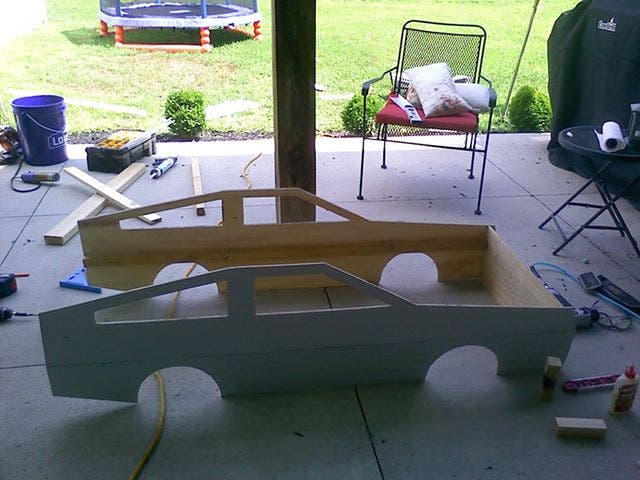 The frame was a garden wagon covered by corrugated plastic sheet.