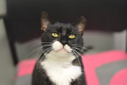 Bandit's the sweetest kitty ever who loves string toys and happens to be very social. You can even hear Bandit purring from across the room. She's super chatty and loves her humans.