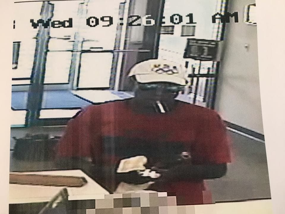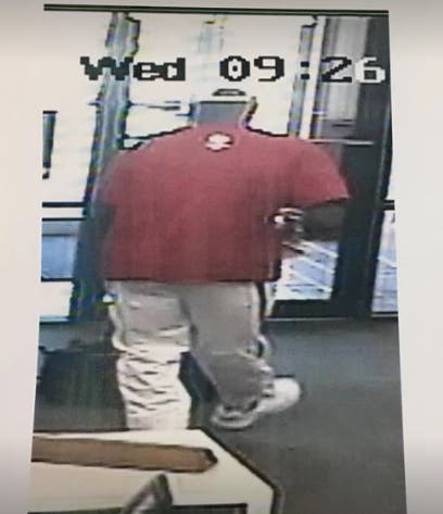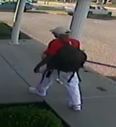 The suspect is described as a black man about 6 feet tall and 160 pounds in his late 40s or early 50s. Police said he was wearing a red shirt, white pants, sunglasses, a white hat and white shoes and was carrying a black book bag.