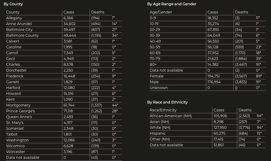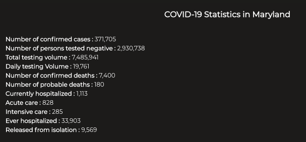 Here is the latest coronavirus data from Maryland reported Monday, Feb. 15: