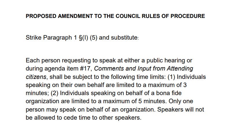 The Harford County Council requests that people register to speak. Here is what the Harford County Rules of Procedure stated before the amendment: