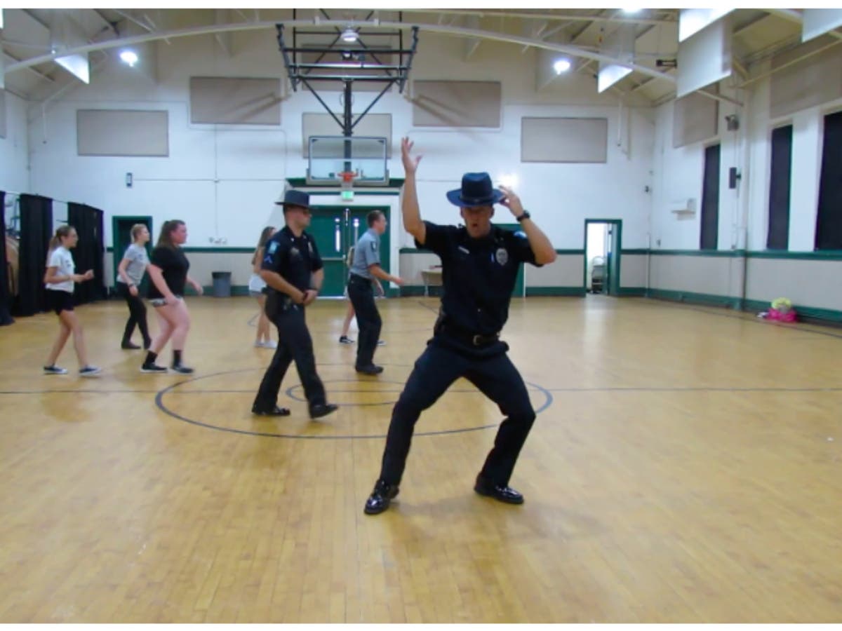 Officers Rick Krause and Nick Rhodes led Explorer Post 9010 in their rendition of Brook & Dunn's "Boot Scootin' Boogie."