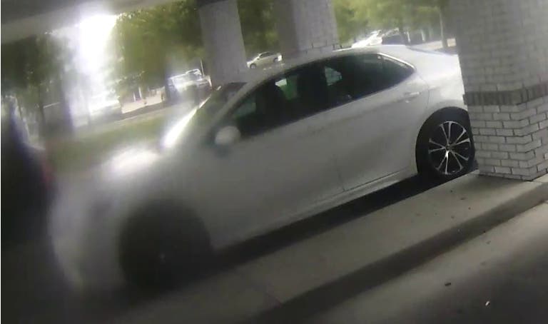 Authorities distributed pictures Thursday showing a woman driving a newer white Toyota Camry with black and silver rims.