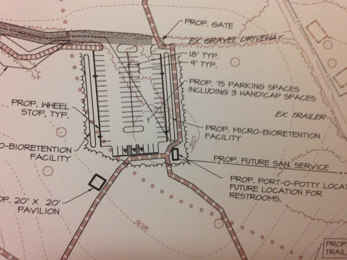 Based on the acreage, Hoover said plans call for 75 parking spots. Port-o-potties may be installed near the lot.