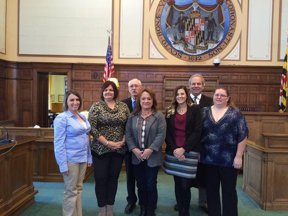On November 20, 2015, Judge W. Timothy Finan and Family Law Master Richard Maslow swore in the newly-trained “CASAs.” The dedicated new volunteers include Kelly Barmoy of Ellerslie, Mandi Graham of Frostburg, Shannon Davis of Cresaptown, and Suzanne D’Atri of Cumberland.