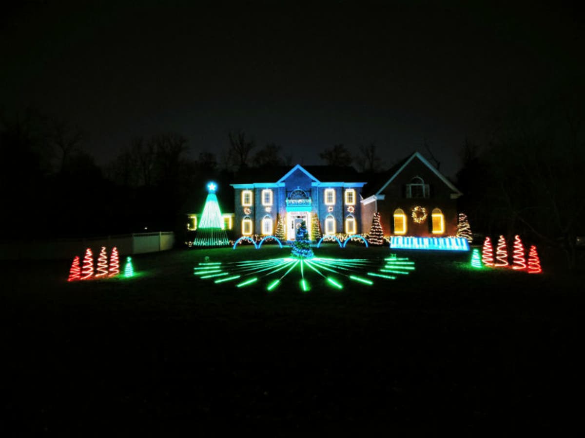 A 22-foot Christmas tree and fan of light are part of this spectacular display in Bel Air.