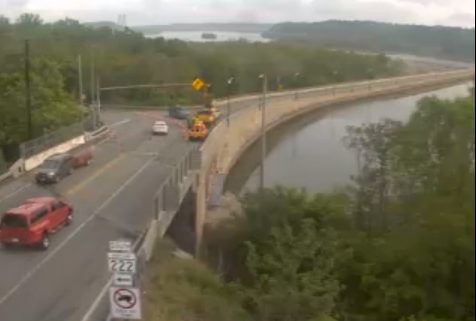 Road over the dam was closed during much of rush hour Monday.