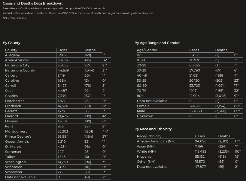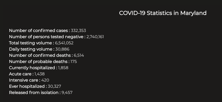 Here's a look at coronavirus data across Maryland as of Wednesday, Jan. 20: