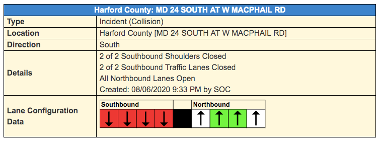 HARFORD COUNTY, MD — A crash closed one side of MD 24 Thursday night, according to the Maryland State Highway Administration.