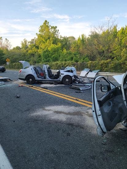Aberdeen Police Acting Corporal James Haddix was driving to work from his home in Delaware when a suspected impaired driver hit him on the Christiana Parkway Sunday just after 4 a.m. According to the Aberdeen Police Department, the accident "was horrific" and both vehicles were destroyed.