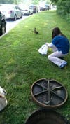 Springing into action, one pharmacist opened up the manhole, and another pharmacist hopped inside, where they found a group of ducklings, Heckrotte said.