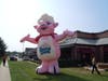 It was not much later that Wilbur, the restaurant's pink pig mascot, arrived in style. He leaped off the back of an old fire engine driven by the Bel Air Volunteer Fire Company to double-high-five anyone who greeted him.