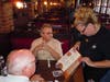Much to his delight, he was. Famous Samantha S., the bartender, then served him the first beer in the history of Bel Air's Famous Dave's–a Sam Adam's Lager draught.