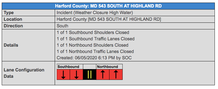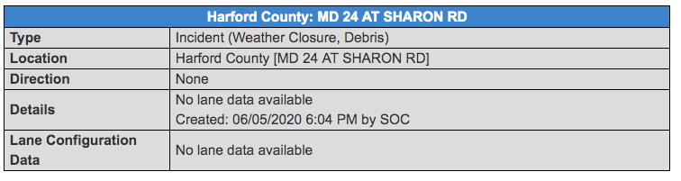 Law enforcement reported a water rescue near Jarrettsville before 5:40 p.m., and emergency management said there were several roads closed in the Norrisville area, according to the National Weather Service.