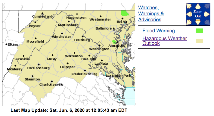 These locations may get flooded, according to the warning: Jarrettsville, Pylesville, Darlington, Forest Hill, Cardiff, Chrome Hill, Norrisville, Street, Rocks, Scarboro and Whiteford. In particular, weather officials pointed out these flood-prone areas: