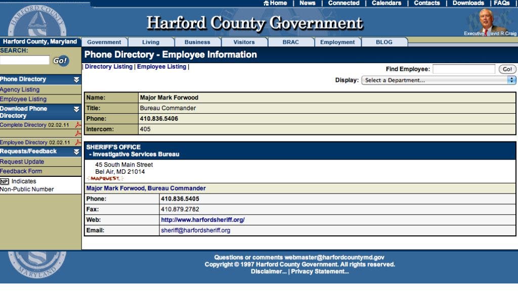 The sheriff's office is not under the jurisdiction of Harford County government, but Lloyd said various agencies are listed on the county government site as a resource to citizens.