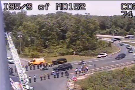Due to the funeral procession, Interstate 95 was closed at MD 152 until approximately 1:30 p.m.