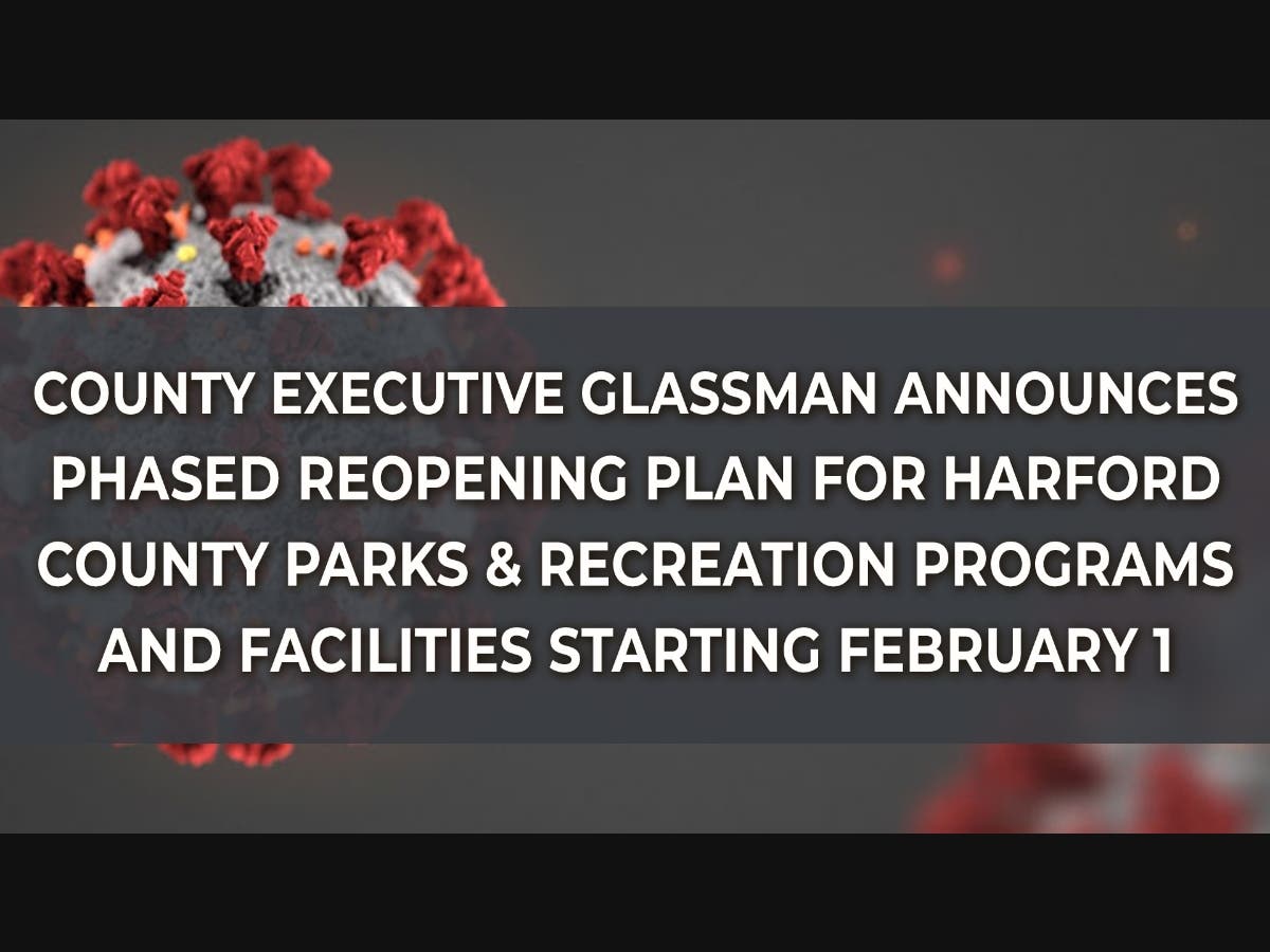 County Executive Barry Glassman today announced a phased reopening plan for Harford County Parks & Recreation programs and facilities closed in November due to the pandemic.