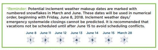 - Wednesday, June 20: Scheduled Last Day for Teachers (if all inclement weather make-up days are used)