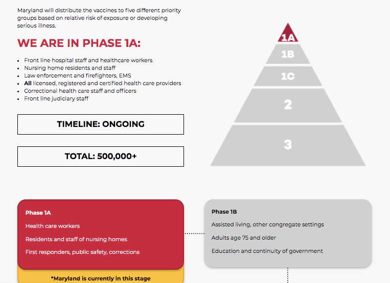 Those in the priority 1A group have to be vaccinated first before the next group may receive their vaccinations.