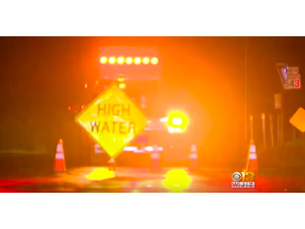 Still picture of high water on MD 543 from WJZ/YouTube.