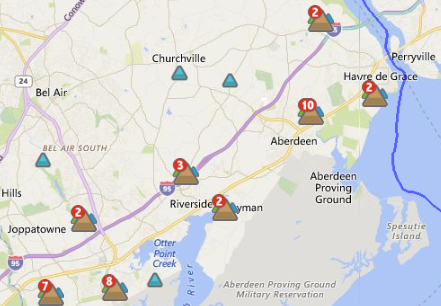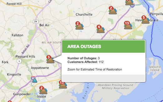 Above, BGE outage map for Harford County as of 3:15 p.m.