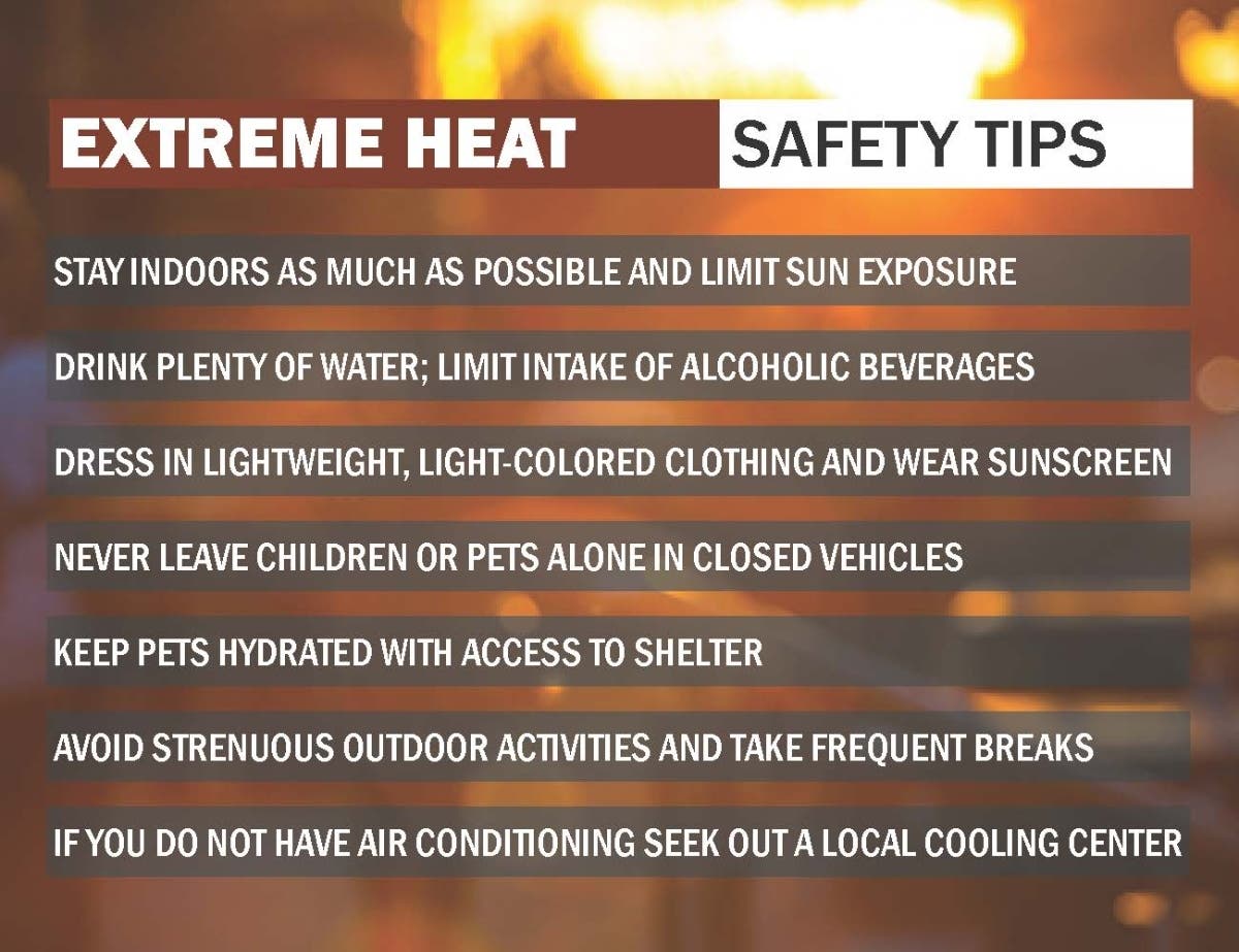 During periods of extreme heat, the Harford County Department of Emergency Services encourages citizens to follow these safety guidelines: