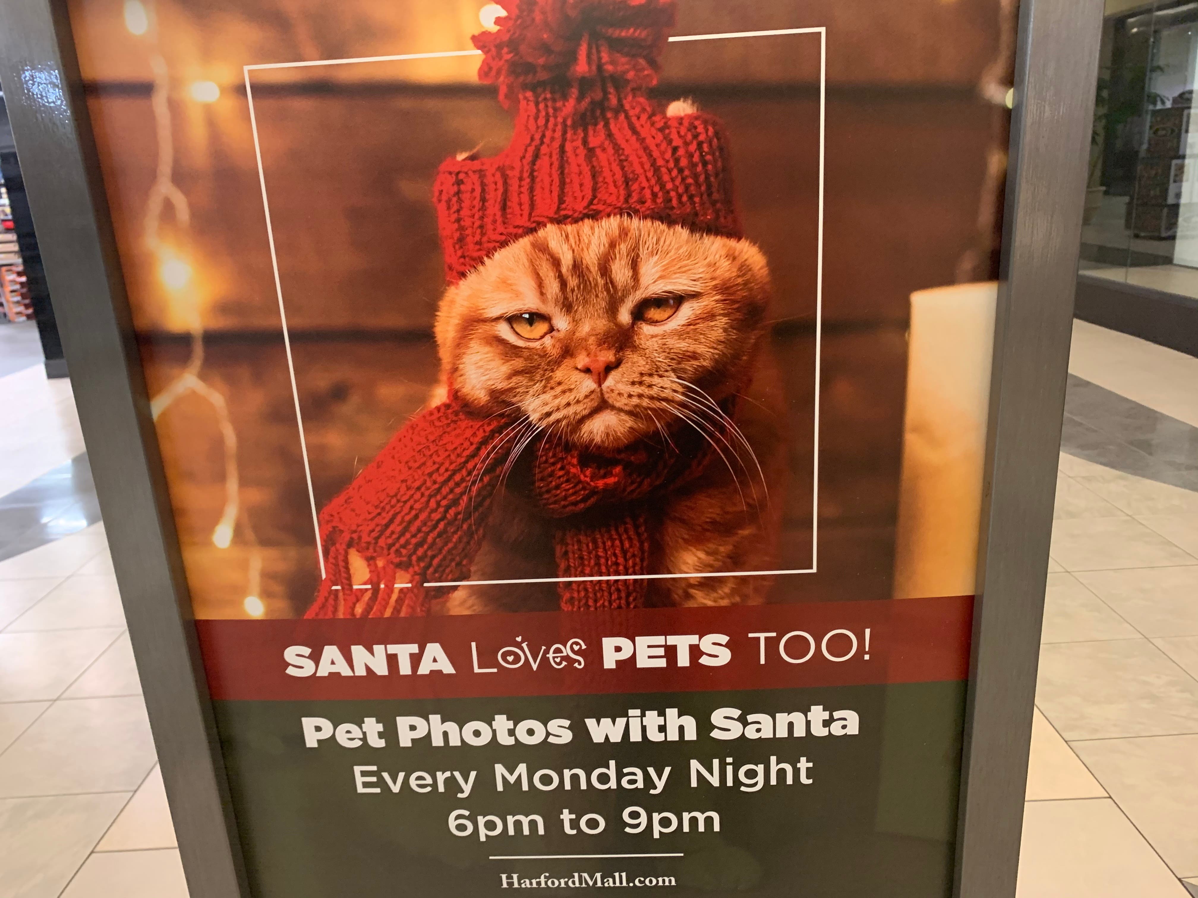 Pets who want to see Santa will have to wait until Monday, when pet photos are 6 to 9 p.m.