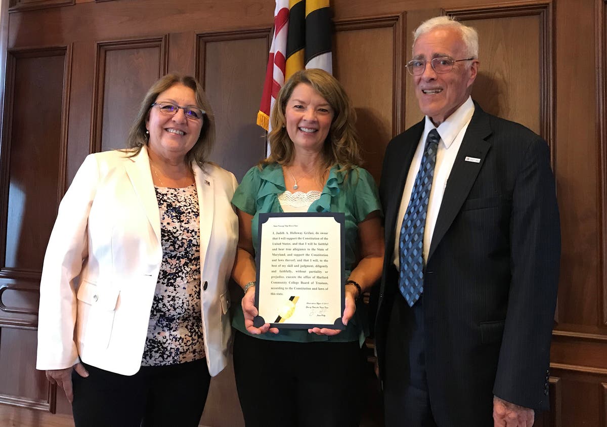 From HCC: Governor Hogan appointed Dr. Judith Holloway and Brian Walker to five-year terms on the nine-member Harford Community College Board of Trustees. The new trustees were sworn in at the Harford County Courthouse on August 13, 2018.