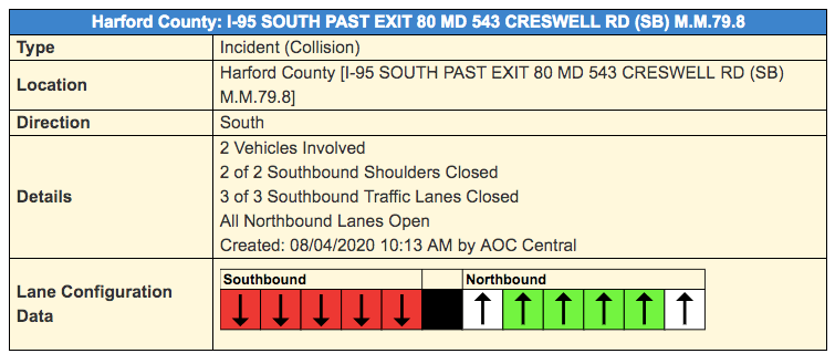 The crash happened before 10:15 a.m. on I-95 south past the exit for MD 543.