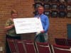 "We wanted to make a donation to the Bel air High School Bobcat sculpture in honor of principal Voskuhl for $200," she said, holding a giant check.