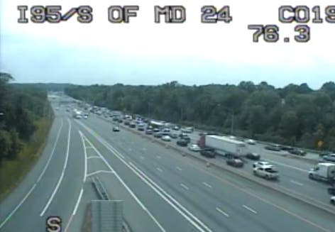 As of 4 p.m., traffic was stacked up on I-95 south beyond the exit for MD 24.