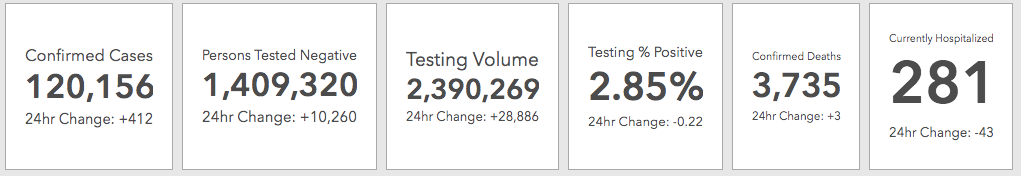 - Hospitalizations are at 281, below 300 for first time since March 30.