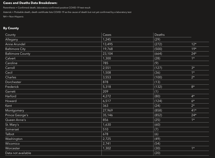 Here is a look at data on coronavirus in Maryland as of Wednesday, Nov. 11:
