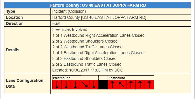 Route 40 was closed at Joppa Farm Road after 11 p.m.