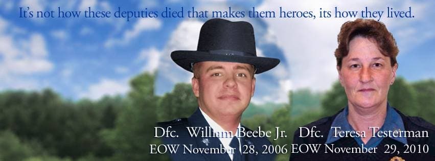 Dfc. Beebe died Nov. 28, 2006, and Dfc. Testerman died Nov. 29, 2010, and the sheriff's office posted a banner on its Facebook page in memoriam.