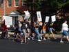 The crowd chanted "George Floyd" while marching along Main Street to Hickory Avenue to Churchville Road.
