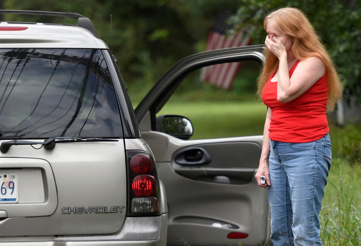 Shirley Pollack, of Perryville, reacts after learning that multiple people were shot. Pollack was concerned about her son, who worked near the scene of the shooting. (AP Photo/Steve Ruark)