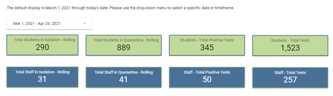 Since March 1, there have been 345 students who tested positive for the virus and 50 staff who tested positive, according to Harford County Public Schools, which reported Friday that more than 880 students were in quarantine while almost 300 were in isolation.