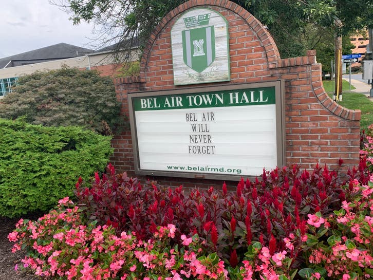 The town of Bel Air posted a tribute on its marquee, as did Bel Air High School. Both planted flags in remembrance of the victims as well.