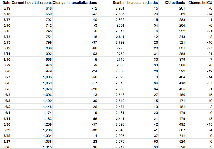 For more than three weeks, the number of hospitalized coronavirus patients has decreased each day, according to state health data, and the number on the intensive care unit has gone down for 17 consecutive days too.