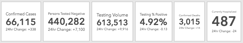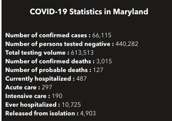 In the past day, 338 people tested positive for the coronavirus in Maryland, where 7,100 negative test results were also reported.