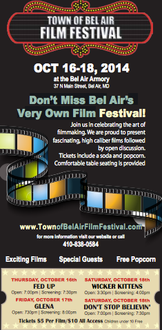 The Town of Bel Air, in conjunction with the Bel Air Cultural Arts Commission, announces the 6th annual Town of Bel Air Film Festival to be held Oct. 16 to 18, 2014, at the Bel Air Reckord Armory, 37 North Main Street in Bel Air.