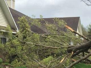 The tree toppled down in the 800 block of Moores Mill Road in Bel Air during a “quick rainstorm” Wednesday afternoon, according to Rich Gardiner, spokesman for the Harford County Volunteer Fire and EMS Association.