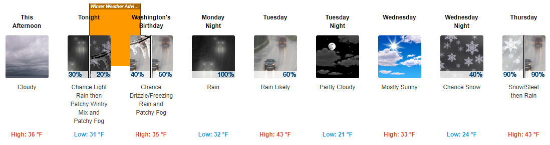 A winter storm watch takes effect for Allegany, Garrett and Washington counties from 6 p.m. Monday to 9 a.m. Tuesday based on the potential for significant icing.