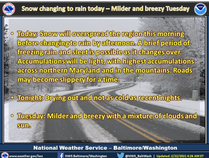 The National Weather Service placed Harford County on alert for winter weather Monday, Feb. 22.