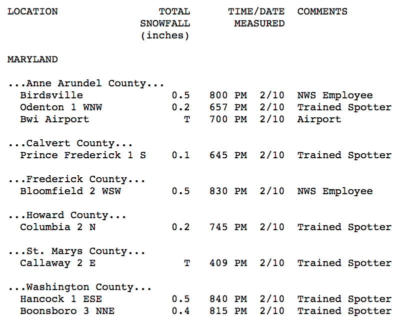 — NWS Baltimore-Washington (@NWS_BaltWash) February 10, 2021